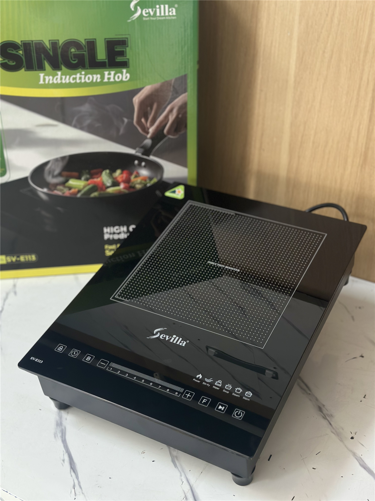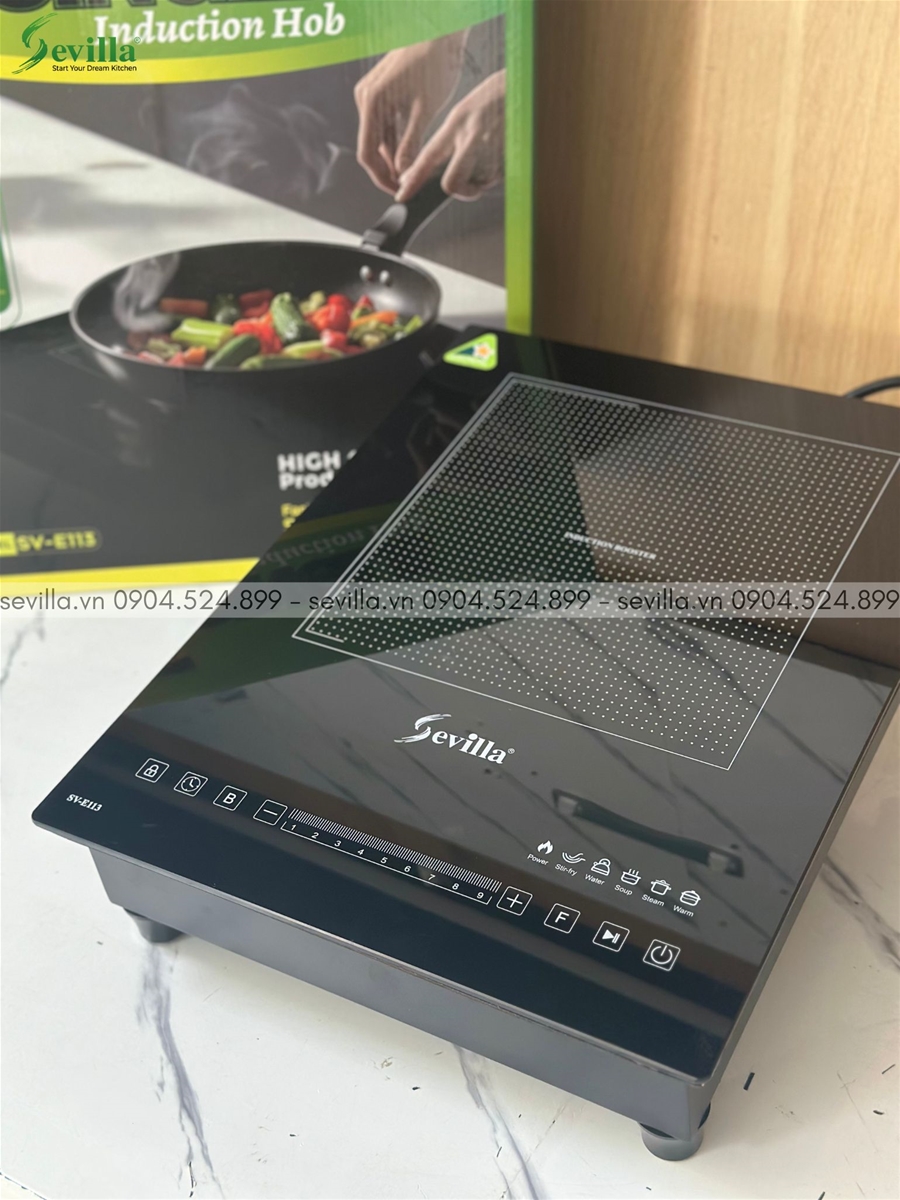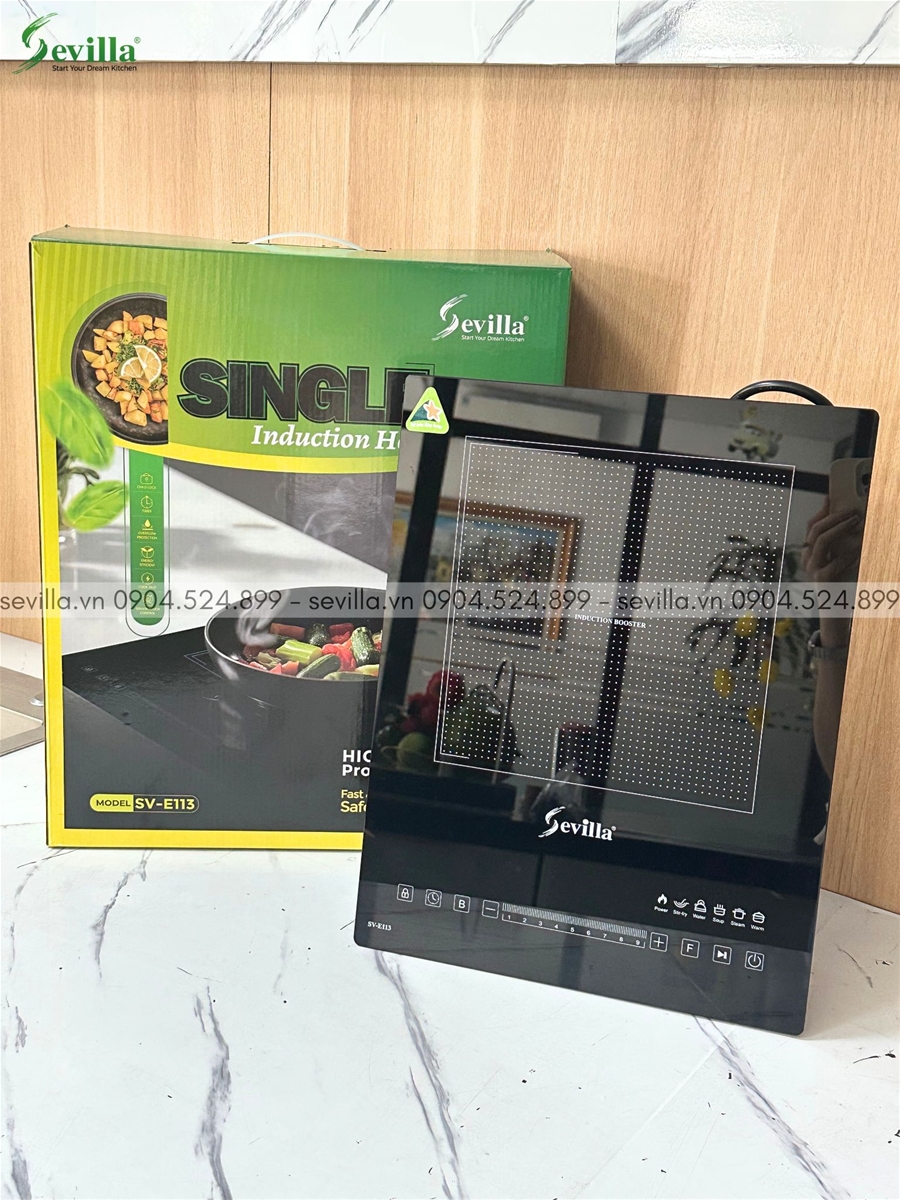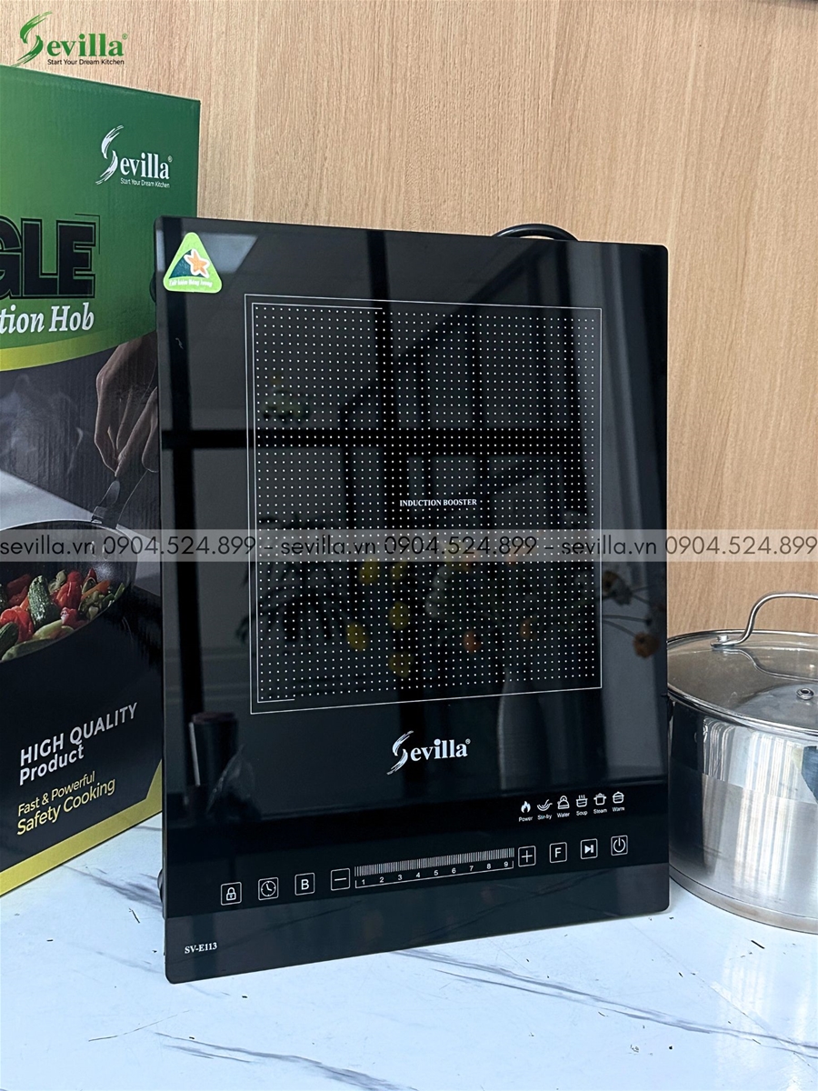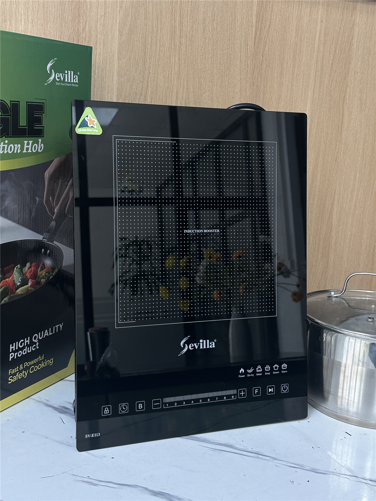 Bếp từ đơn Sevilla SV-E113 là lựa chọn lý tưởng cho những ai đang tìm kiếm một thiết bị nấu ăn hiện đại, tiện lợi và tiết kiệm năng lượng. Với thiết kế nhỏ gọn, kiểu dáng sang trọng cùng mặt kính đen tinh tế, SV-E113 phù hợp với nhiều không gian bếp, từ căn hộ chung cư đến nhà trọ, có thể di chuyển lắp đặt dễ dàng (Bếp có thể lắp âm hoặc dương)