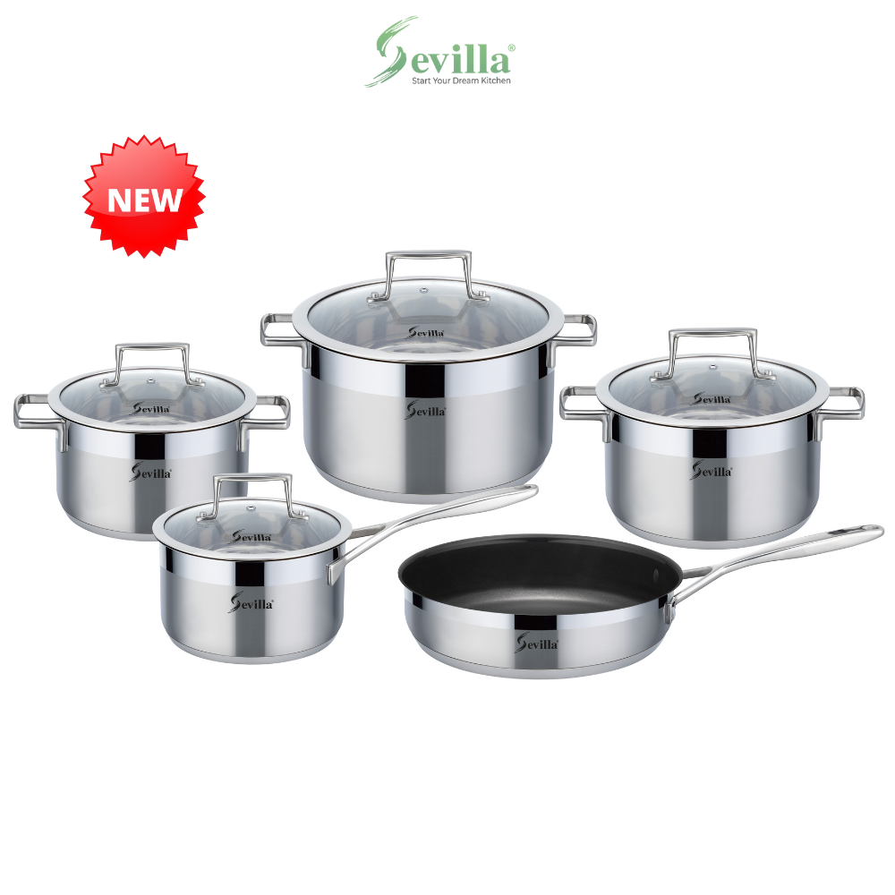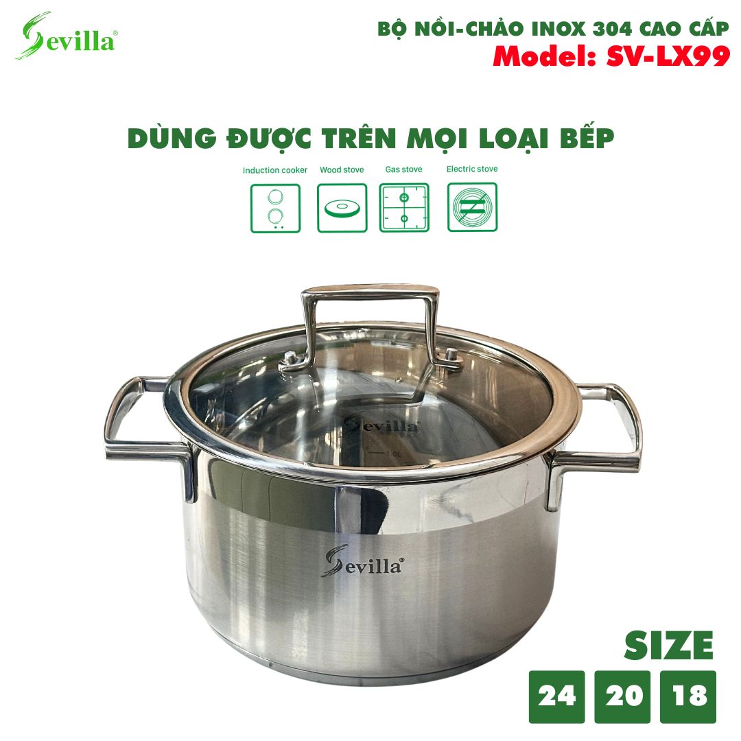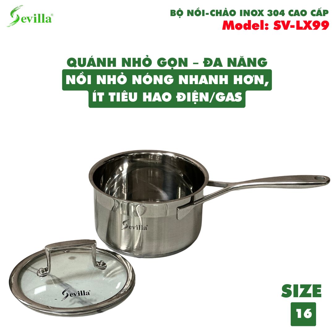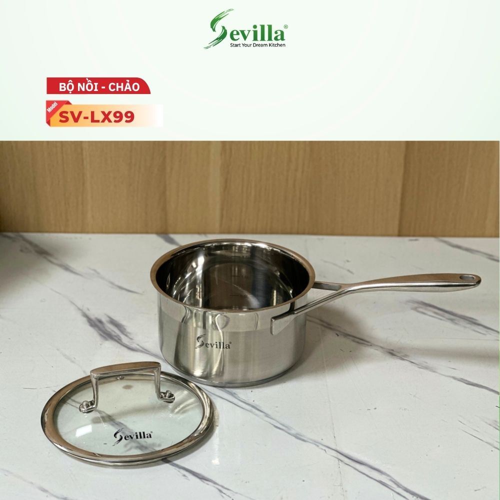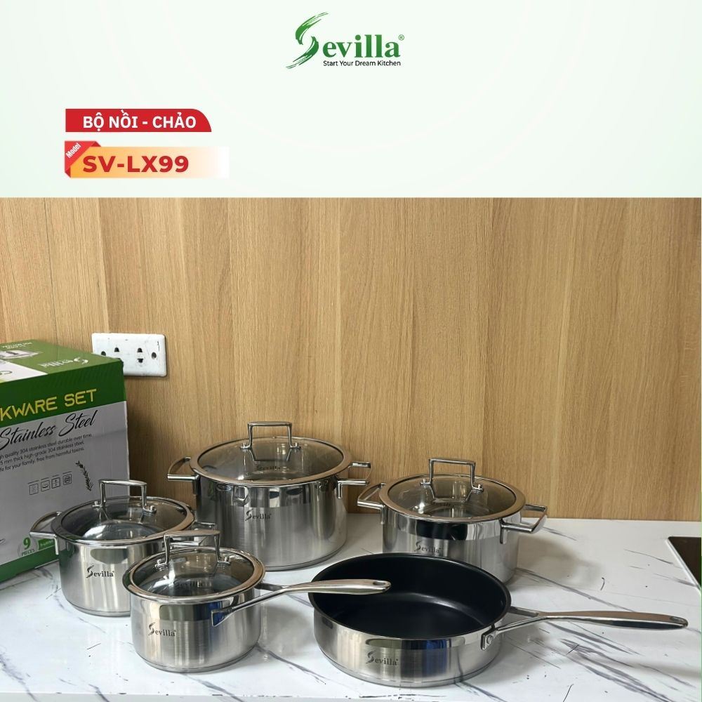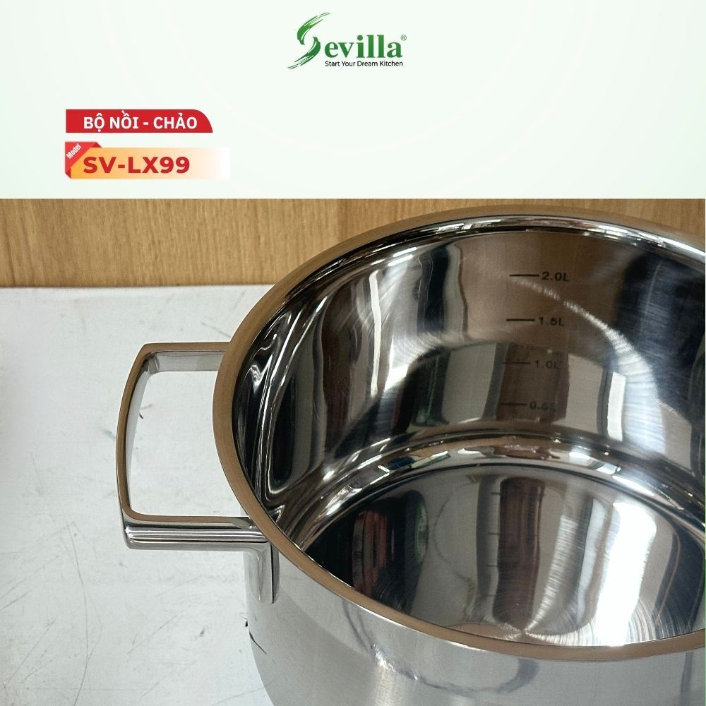 Bộ nồi Sevilla SV-LX99 còn ghi điểm với sự đa dạng về kích cỡ, từ nhỏ đến lớn, đáp ứng mọi nhu cầu chế biến trong gia đình, từ món canh, món xào đến các món hầm cần thời gian dài. Bề mặt inox sáng bóng không chỉ mang lại vẻ đẹp hiện đại mà còn dễ dàng lau chùi, vệ sinh sau mỗi lần sử dụng, tiết kiệm thời gian cho người nội trợ.