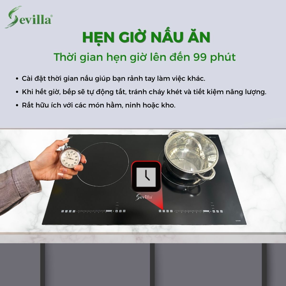 Việc nắm rõ và sử dụng đúng các chức năng trên bếp từ Sevilla sẽ giúp bạn: