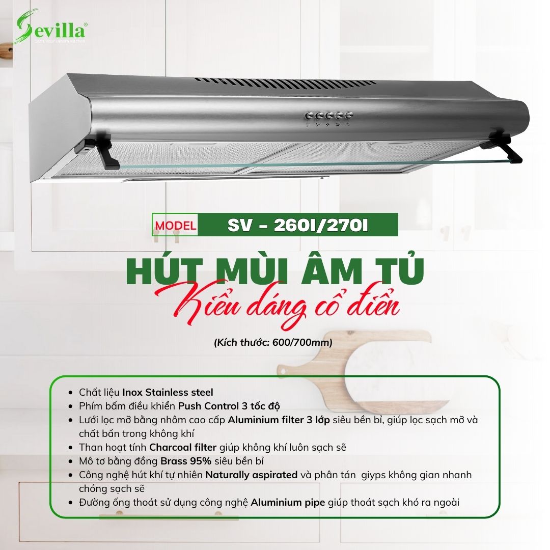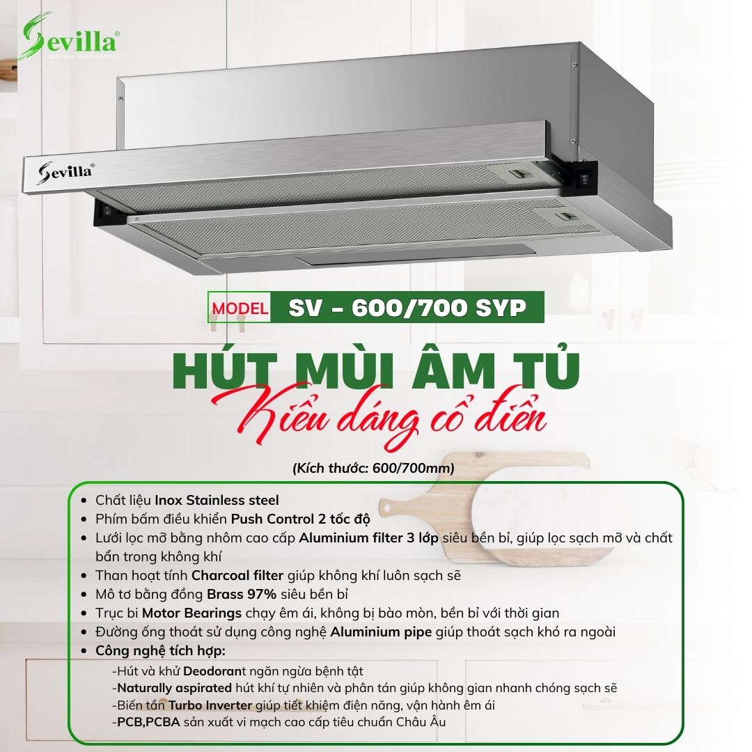 Sevilla mang đến nhiều mẫu máy hút mùi âm tủ hiện đại, phù hợp với mọi không gian – đặc biệt là các căn bếp nhỏ. Với kích thước từ 600mm